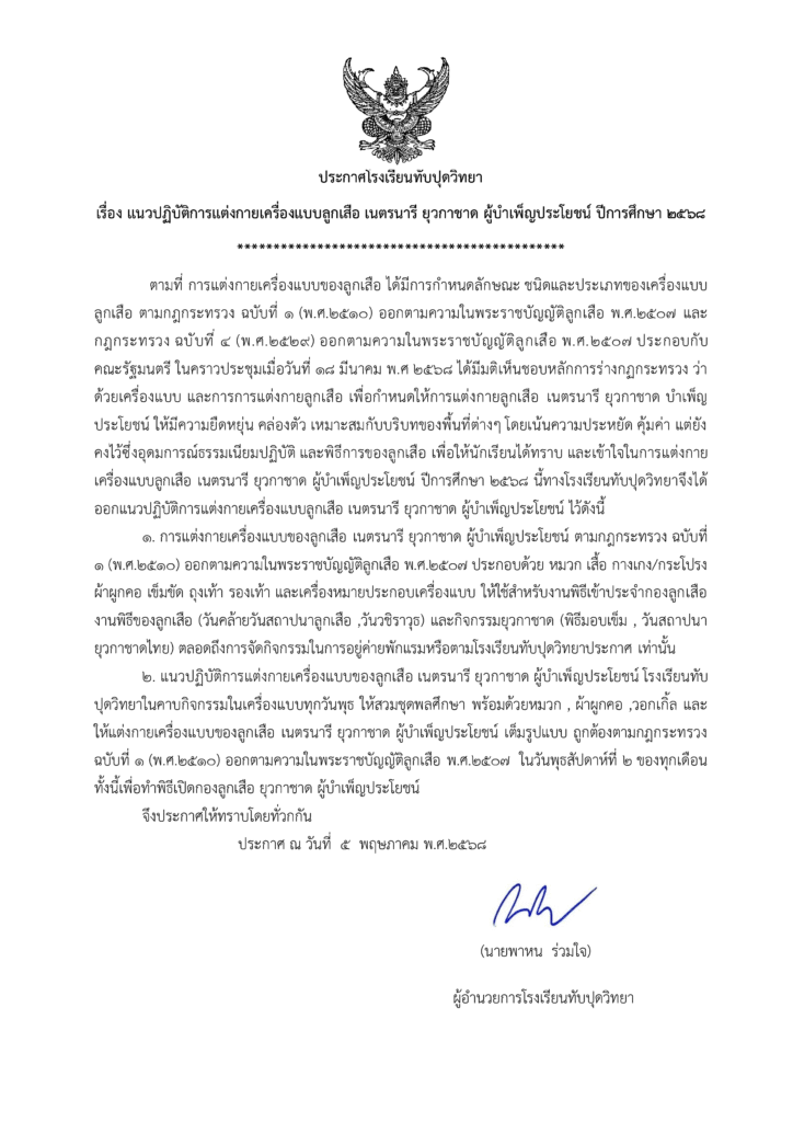 แนวปฏิบัติการแต่งกายเครื่องแบบลูกเสือ เนตรนารี ยุวกาชาด ผู้บำเพ็ญประโยชน์ ปีการศึกษา 2568