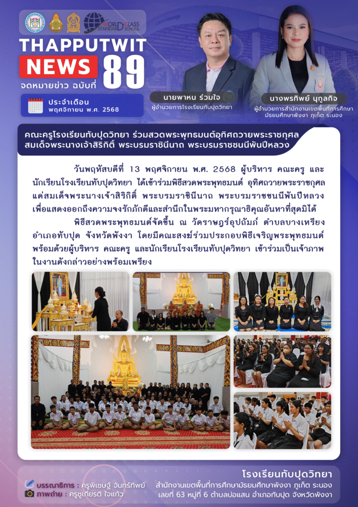 โรงเรียนทับปุดวิทยา ขอแสดงความยินดีและต้อนรับ คุณครูกานต์ธีรา แก้วจันทร์เข้าร่วมเป็นส่วนหนึ่งของครอบครัวทับปุดวิทยาและปฏิบัติหน้าที่ใน กลุ่มสาระการเรียนรู้สังคมศึกษา ศาสนาและวัฒนธรรม