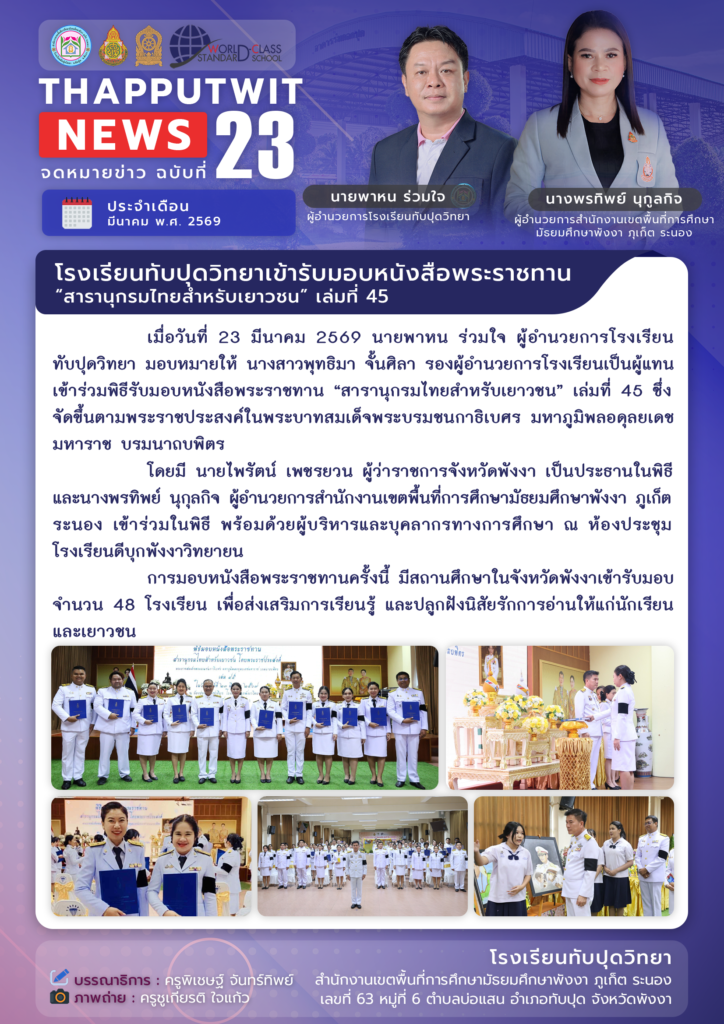 จดหมายข่าว ฉบับที่ 23 ประจำปีการศึกษา 2569 23 มีนาคม 202625 มีนาคม 2026 ฝ่ายประชาสัมพันธ์ โรงเรียนทับปุดวิทยา