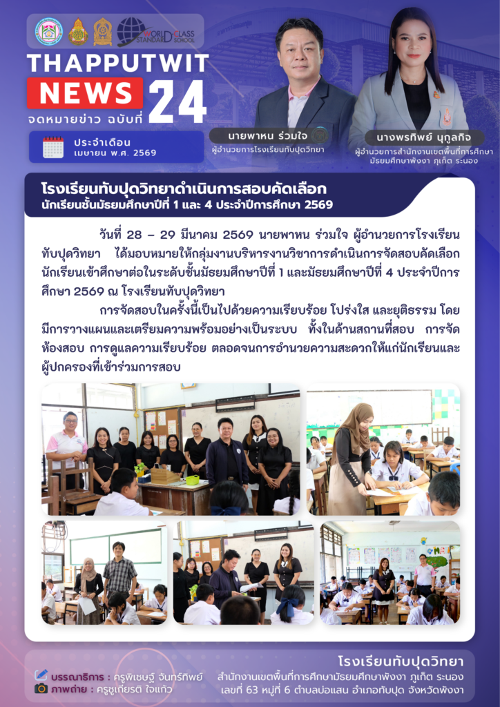 จดหมายข่าว ฉบับที่ 24 ประจำปีการศึกษา 2569 2 เมษายน 20262 เมษายน 2026 ฝ่ายประชาสัมพันธ์ โรงเรียนทับปุดวิทยา