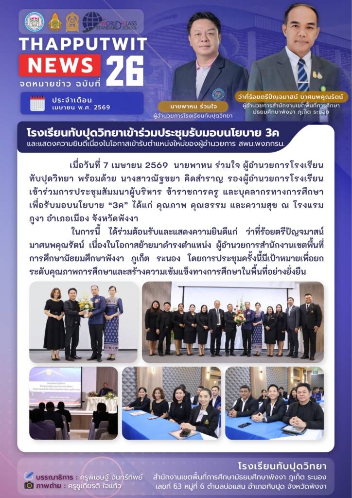 8 เมษายน 20269 เมษายน 2026 ฝ่ายประชาสัมพันธ์ โรงเรียนทับปุดวิทยา