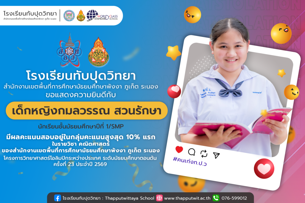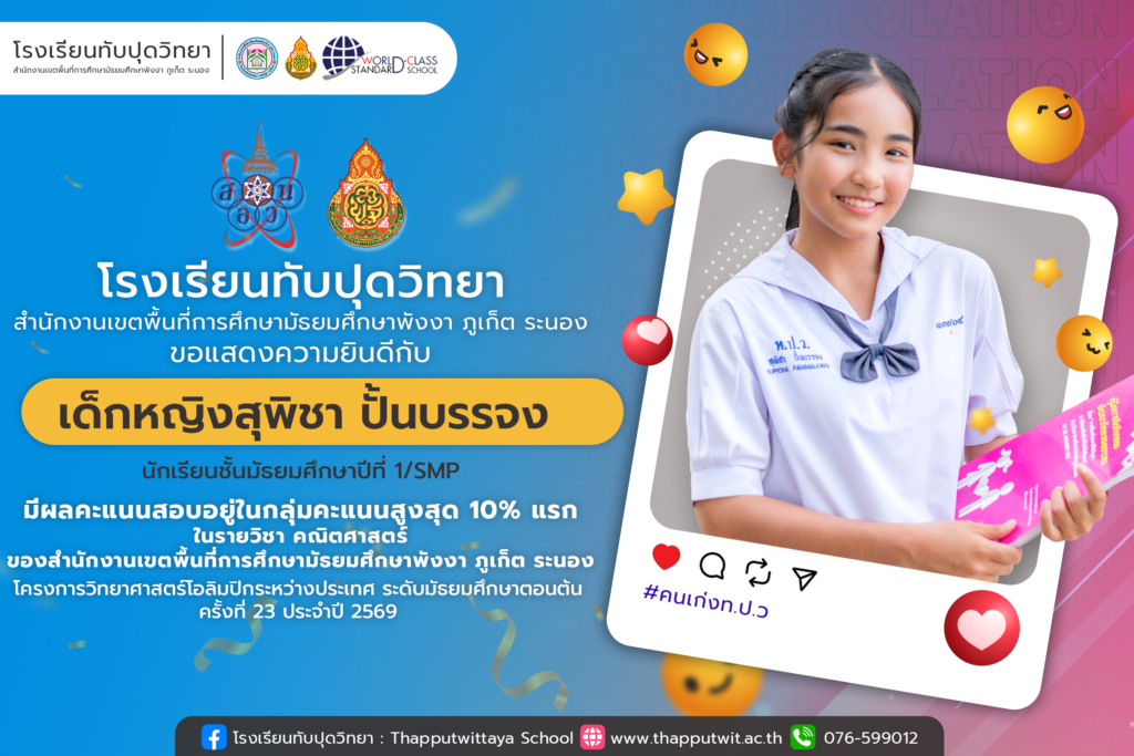 โรงเรียนทับปุดวิทยา ขอแสดงความยินดีกับ