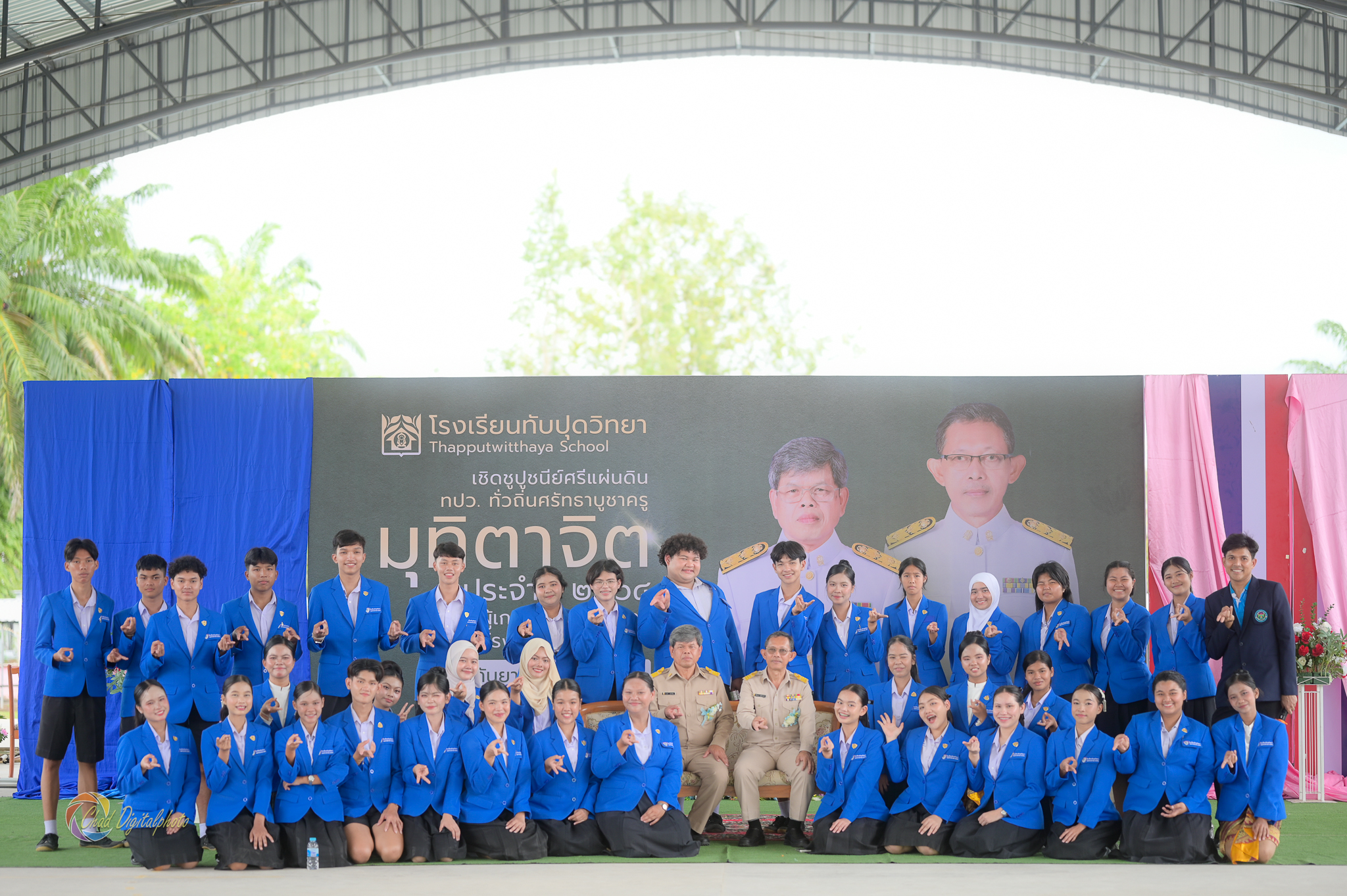 มุทิตาจิต ประจำปี 2568 วันพฤหัสบดีที่ 18 กันยายน 2568 โรงเรียนทับปุดวิทยา ได้จัดกิจกรรม มุทิตาจิตแด่ผู้เกษียณอายุราชการ โดยมีผู้บริหาร คณะครู และนักเรียน ร่วมแสดงความยินดีและชื่นชมในเกียรติคุณของ ครูชัชวาล เกตุเกิดเกล้า กลุ่มสาระการเรียนรู้ศิลปะ และ ครูต่อเหต กะมินสิน กลุ่มสาระการเรียนรู้สังคมศึกษา ศาสนา และวัฒนธรรม ซึ่งปฏิบัติหน้าที่ครูด้วยความเสียสละ มุ่งมั่น ทุ่มเทแรงกายแรงใจในการพัฒนาการศึกษาและดูแลลูกศิษย์ตลอดระยะเวลารับราชการ การจัดกิจกรรมในครั้งนี้นอกจากจะเป็นการแสดงความกตัญญูกตเวทีและความเคารพต่อครูผู้มีพระคุณแล้ว ยังเป็นการสร้างความภาคภูมิใจและเป็นแบบอย่างที่ดีให้แก่นักเรียนและคณะครูรุ่นหลังได้ตระหนักถึงคุณค่าของวิชาชีพครู และร่วมสืบสานวัฒนธรรมแห่งการแสดงออกซึ่งความกตัญญู คลิกเพื่อเข้าดูรูปกิจกรรมเพิ่มเติม