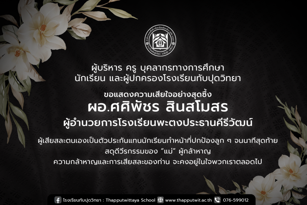 โรงเรียนทับปุดวิทยาขอแสดงความเสียใจอย่างสุดซึ้งต่อการจากไปของ ผอ.ศศิพัชร สินสโมสร